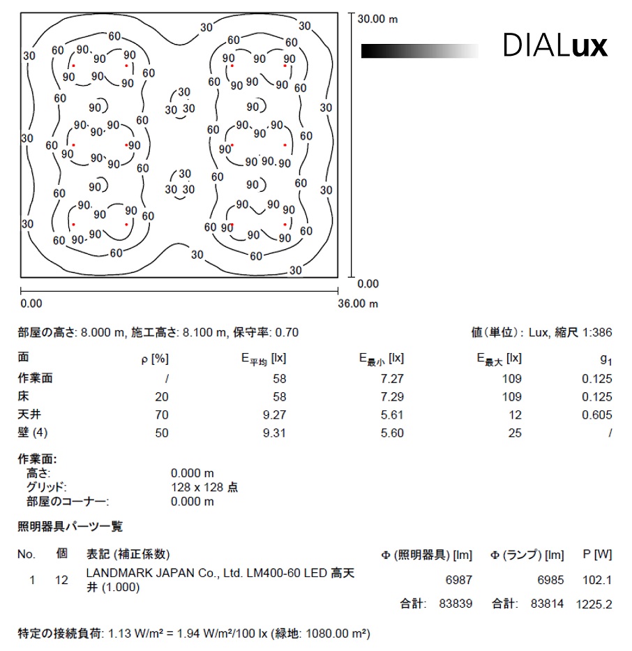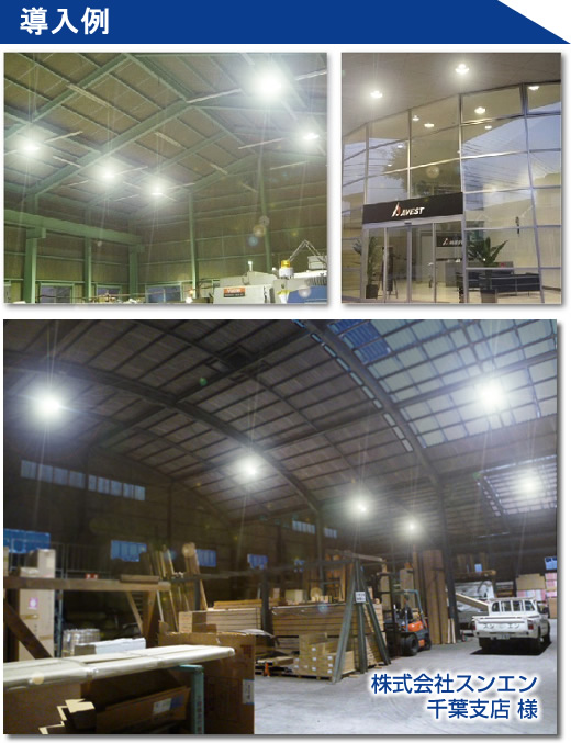 ※400W水銀灯×16灯→高天井用LED100W<LM400-60>×12灯に減灯 ※画像をクリックすると拡大版がご覧頂けます。 |